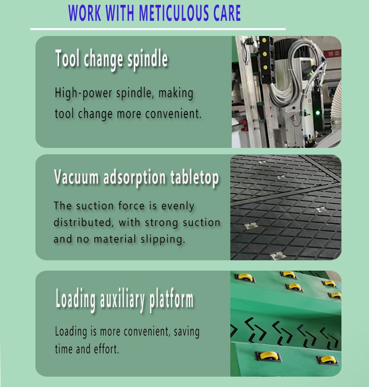 Automatic tool changer (ATC) CNC Router machine is suitable for the processing of various complex products or a variety of processing. It can be equipped with 6, 8, 10, 12 tools according to the different production process requirements of customers.