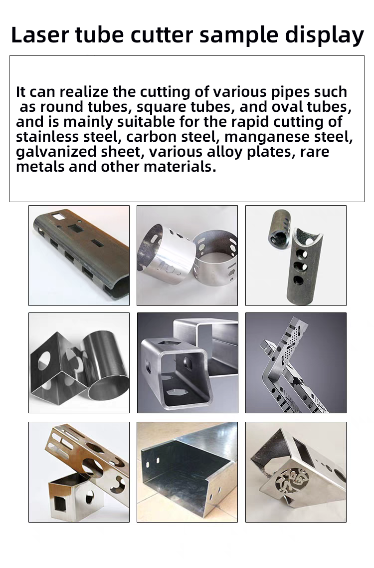 Suitable for various types of metal pipes:round pipes, square pipes, rectangular pipes waist pipes, D-shaped pipes, hexagonal pipes, irregular pipes, etc. Application industry: Used in sheet metal processing, aviation, aerospace, electronics, electrical appliances, subway accessories,automobiles, machinery, precision parts, ships, metallurgical equipment, elevators, house-hold appliances, gift products, tool processing, decoration, advertising, external processing, etc